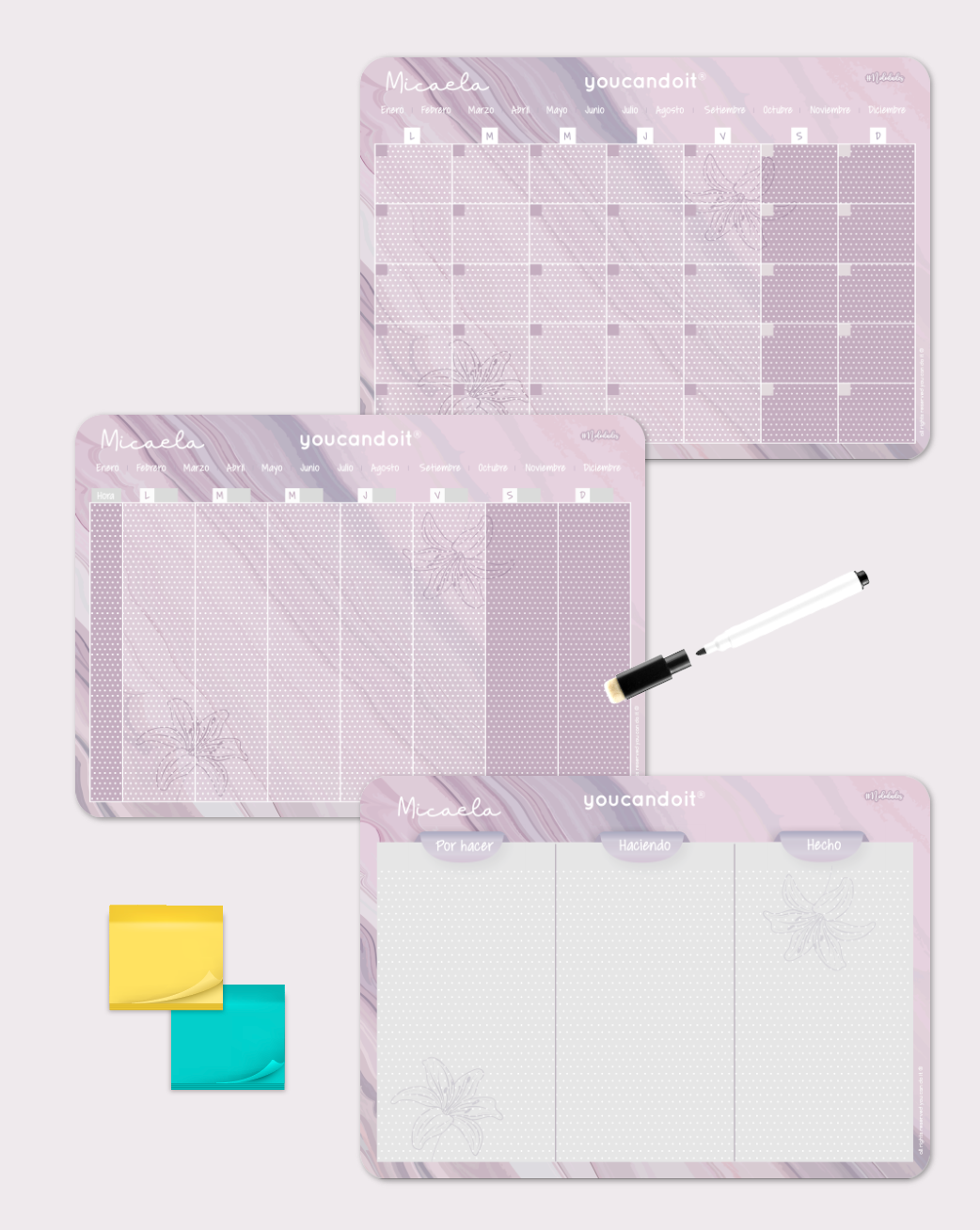 Nuestras tablas de organización son ideales para planear nuestra vida de familia, trabajo, estudios, etc.