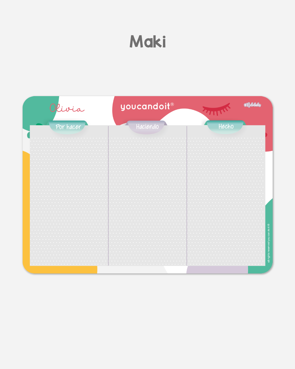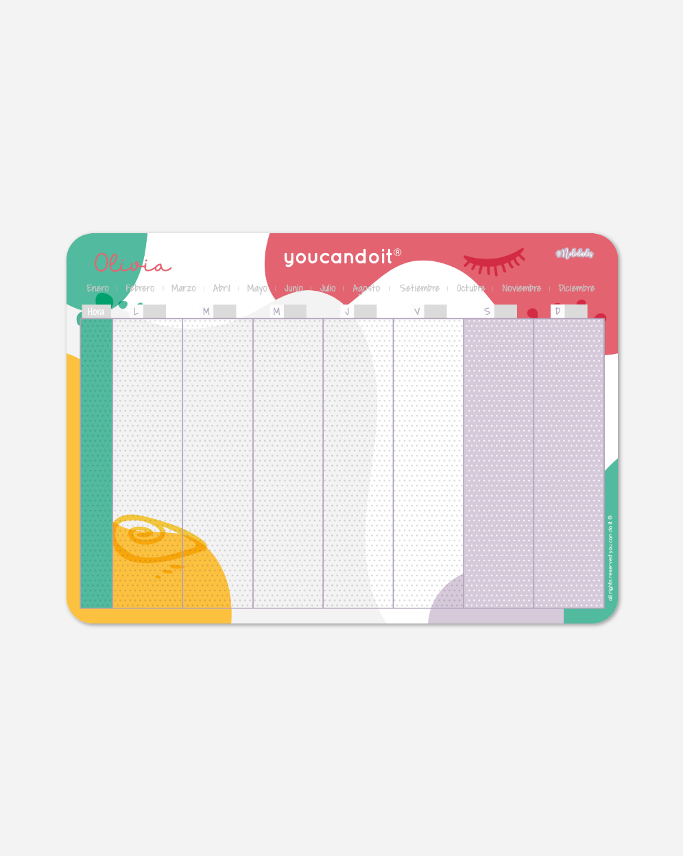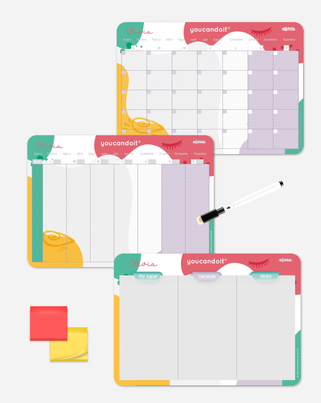 Nuestras tablas de organización son ideales para planear nuestra vida de familia, trabajo, estudios, etc.