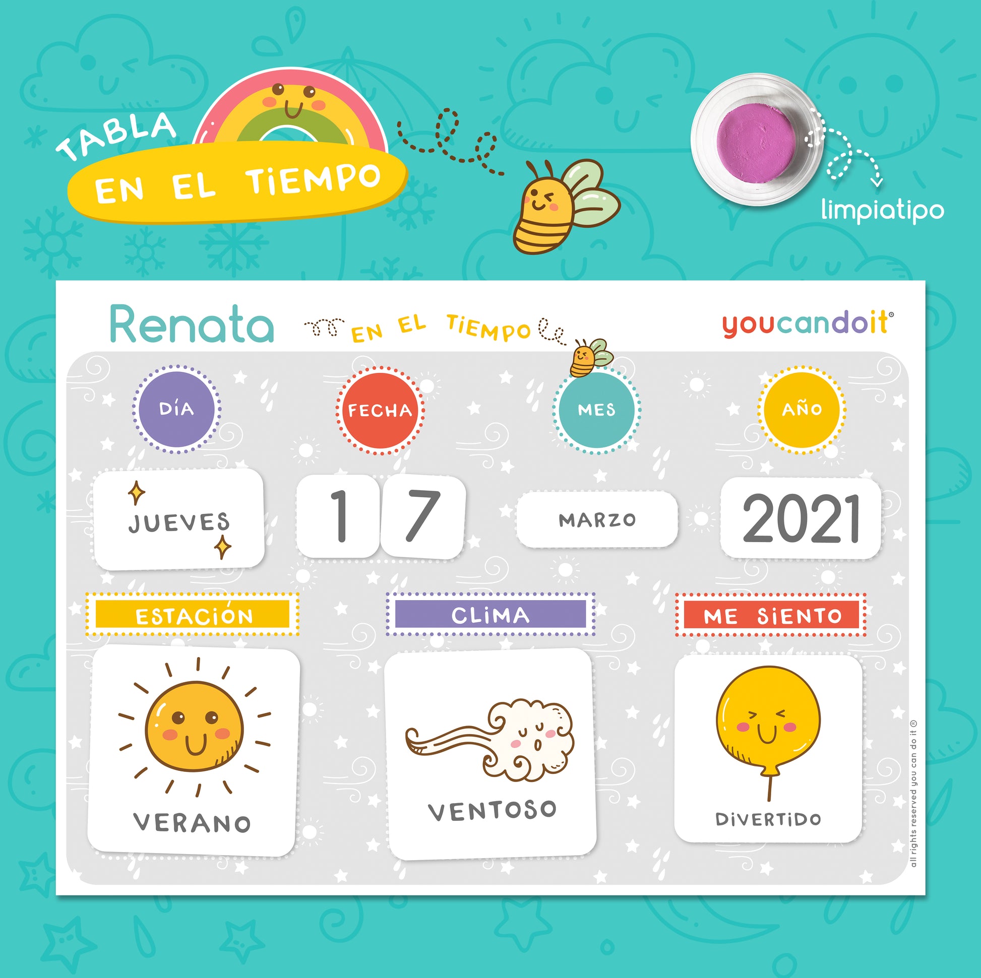 Nuestra tabla del tiempo ayuda a los peques a ubicarse en el aquí y ahora. Ayudándolos a identificar su emociones también.