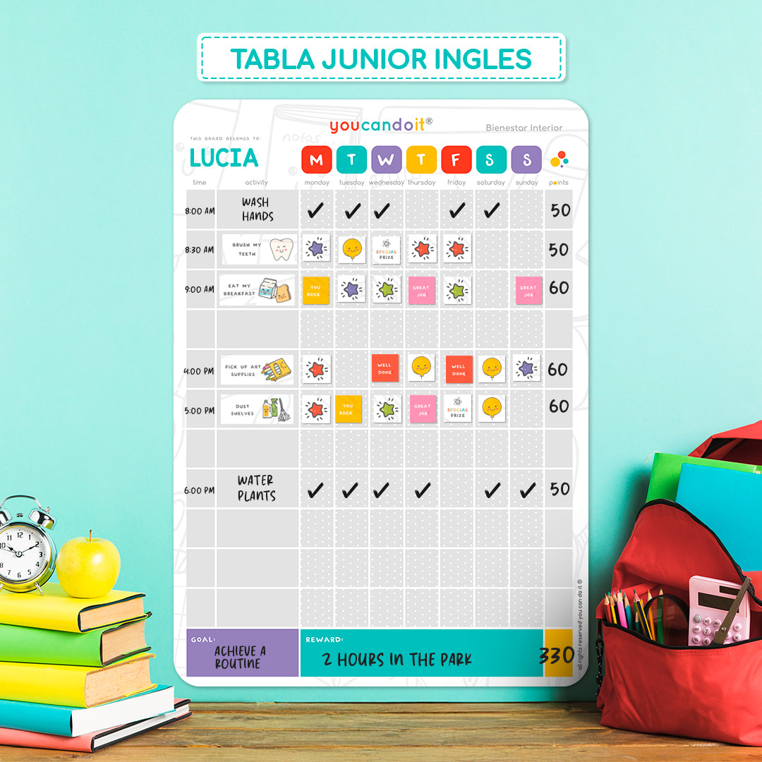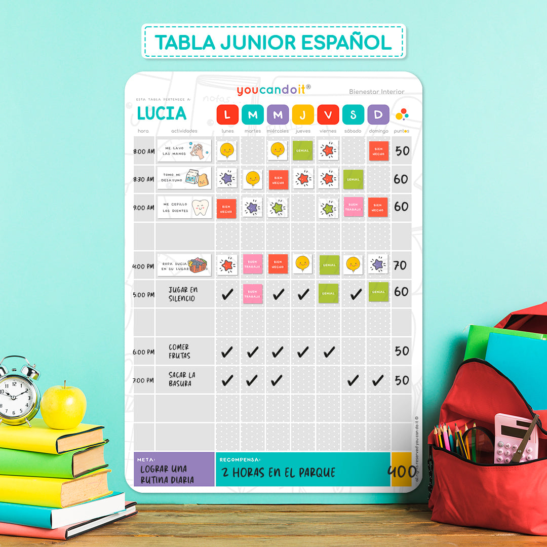 La tabla de rutina diaria Junior, es ideal para ayudar a los peques entre los 7 y 13 años a crear rutinas y hábitos saludables.