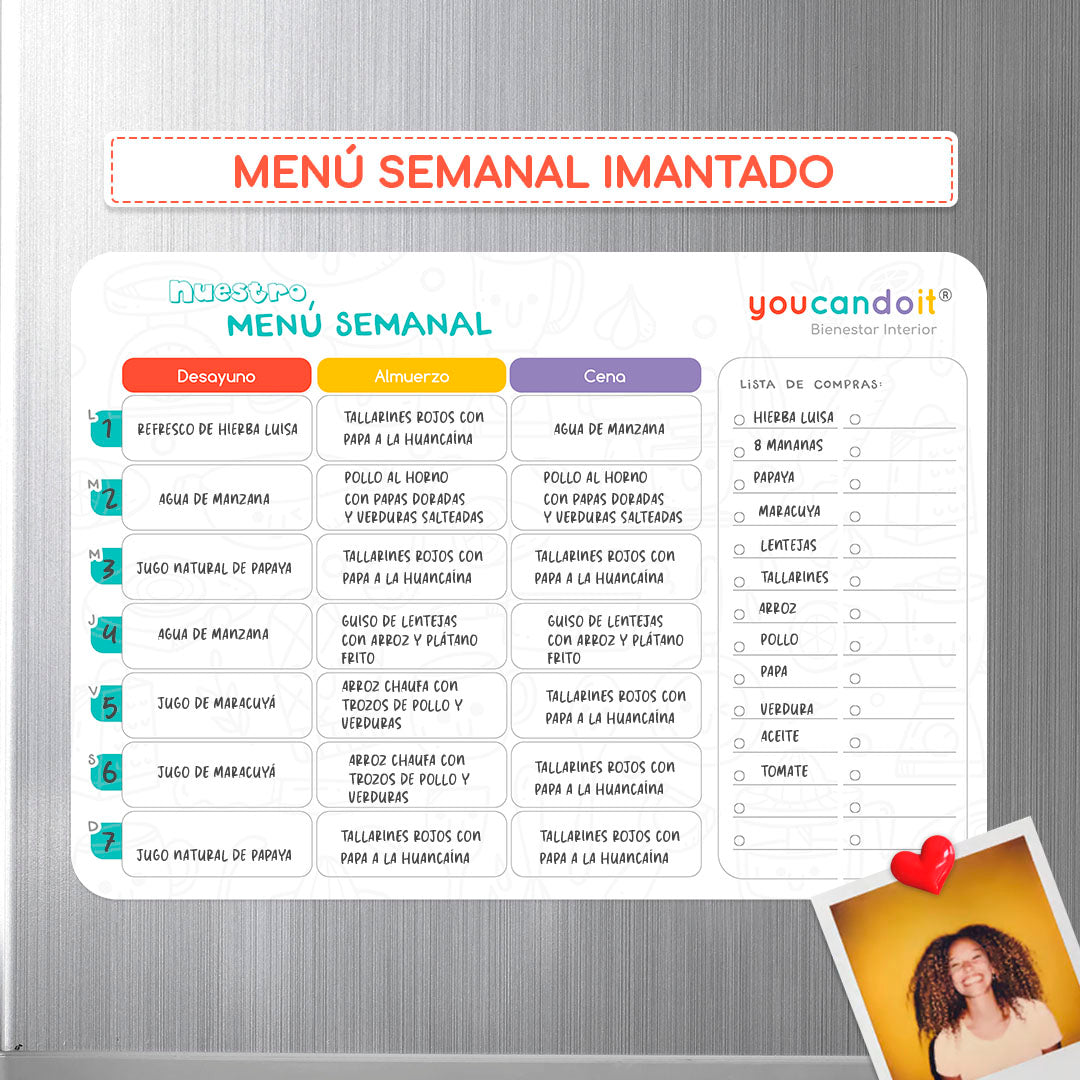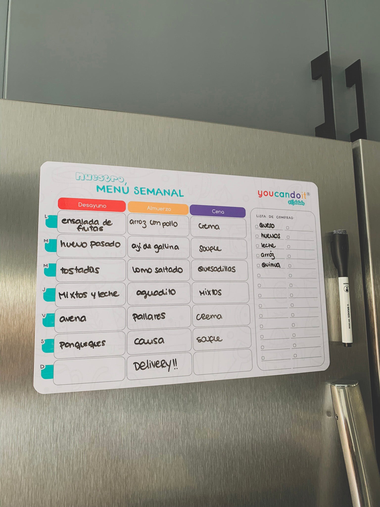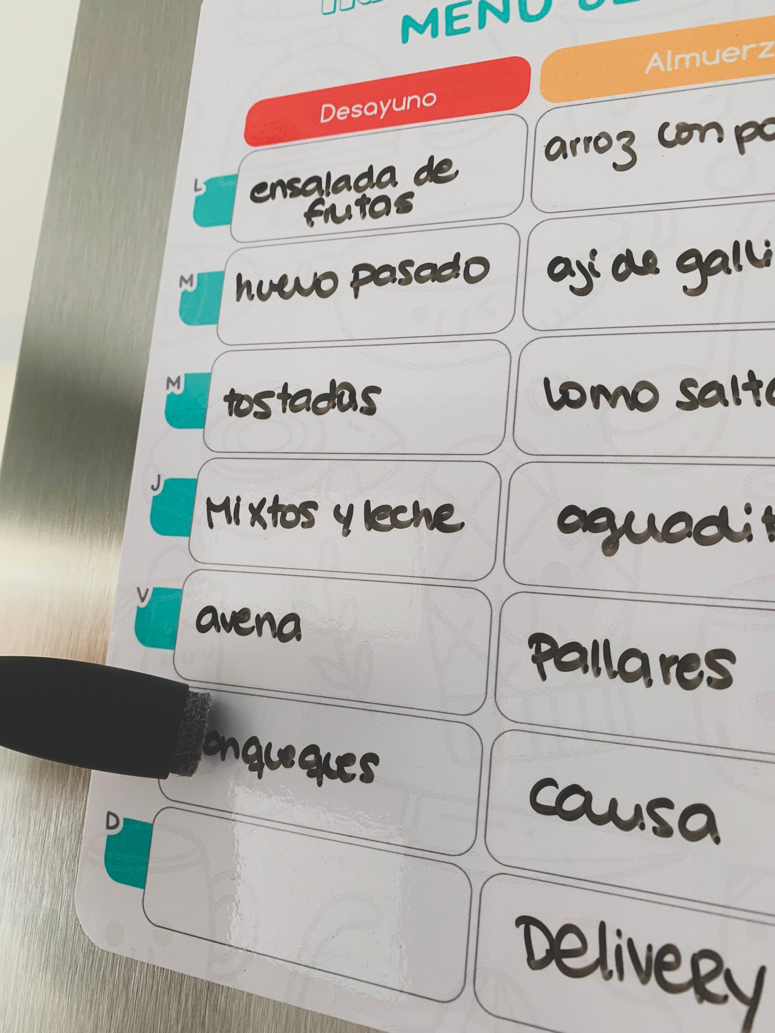Organiza tu menú semanal con este tablero imantado, ideal para colocar en la refri.